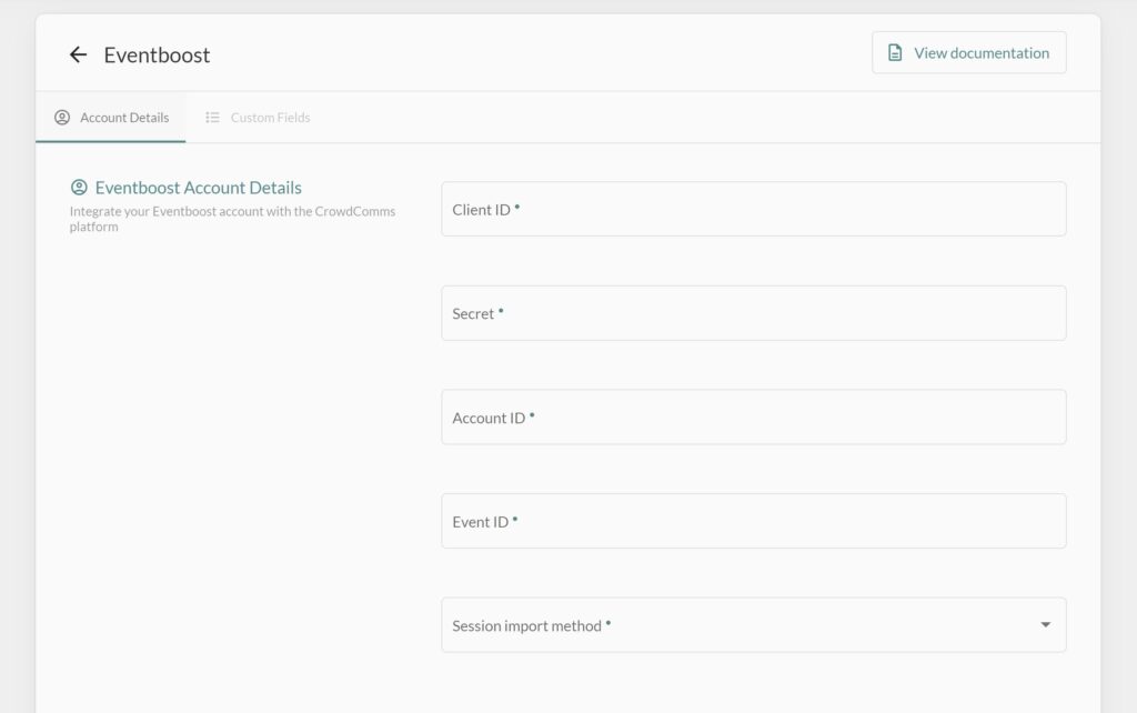 In order to complete the integration there first must be an event created by Eventboost which will have a unique Client ID and Secret. Only Eventboost are capable of generating this information so usually it should only ever be Eventboost that will complete the integration with CrowdComms software. However on the occasions when someone other than Eventboost are generating a integration the user will need to contact Eventboost/CrowdComms client to retrieve the Client ID and Secret before attempting integration.