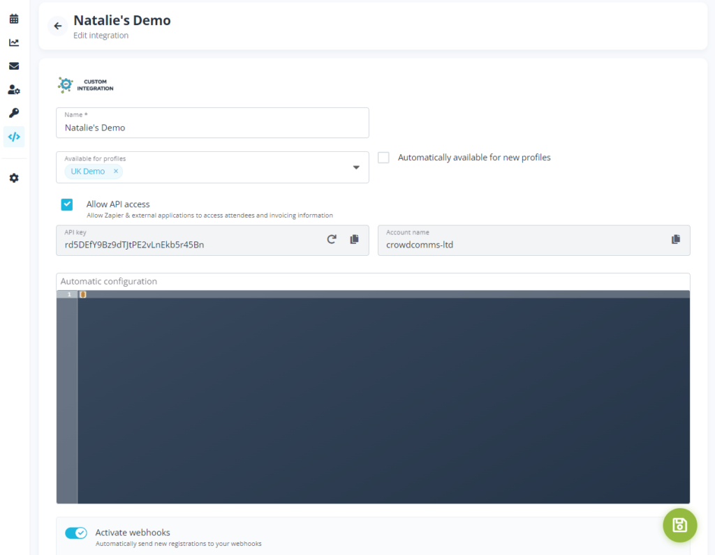 There are two main elements to setting up your integration with idloom. Part one is within the IDLoom CMS itself, where you will create the integration. This will generate your API key. The second part, is within the CrowdComms CMS, where you will link the integration and relevant event to the platform.