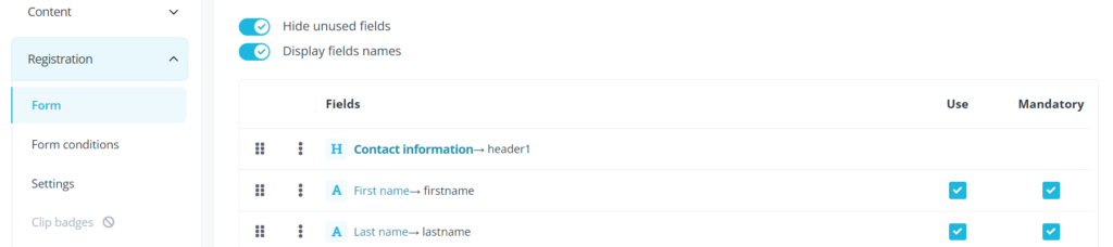 If you create a new custom field and just call it ‘first name’ or ‘company’ for example, the system will not automatically know where you want to map this to. All custom fields will need to be mapped manually. If you are unsure if you have used a default field or created a new one, the easiest way to check is by toggling on ‘display field names’