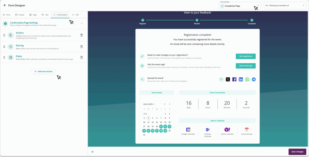 Once each tab is set and the preview looks just right, you’re good to go. Simply click the ‘Save Changes’ button to apply your edits. With a single click, your confirmation page is live and ready for attendees.