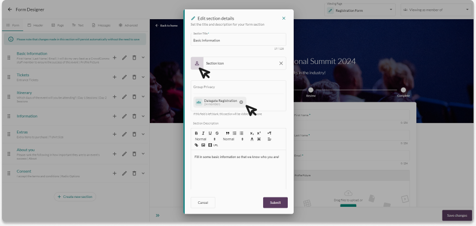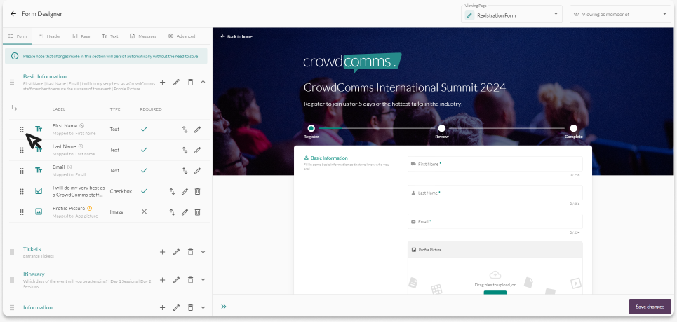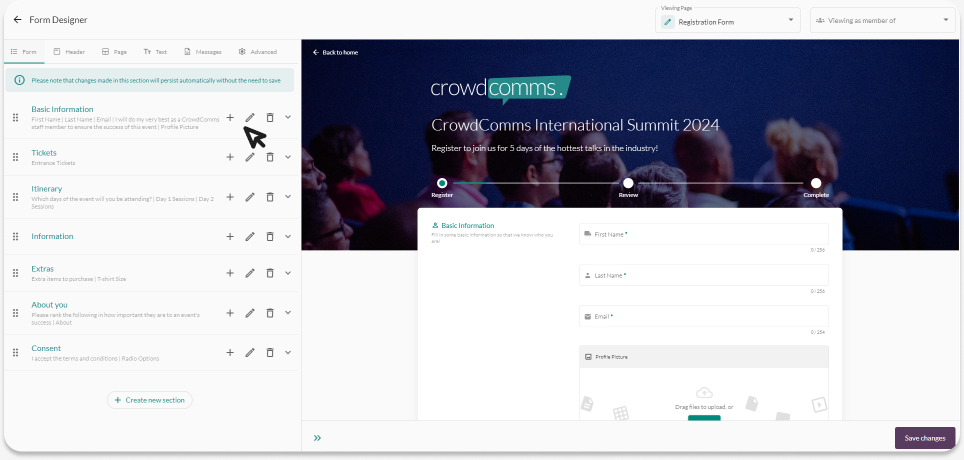 On this page, you will see the Basic Information section. This is a default section that enables the registrant to add their email, first and last names.