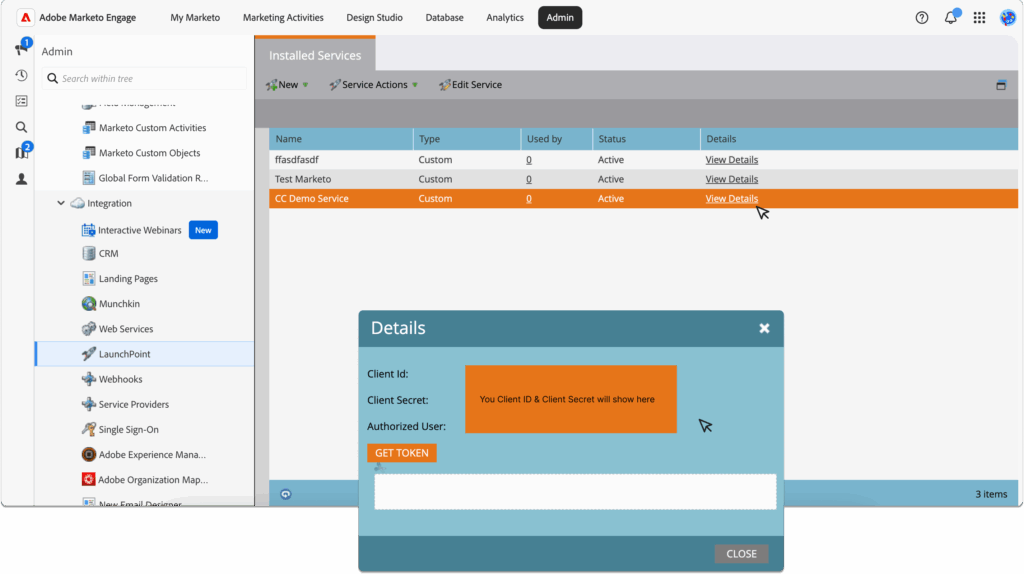 - Begin by logging in to Marketo and navigating to the instance you wish to integrate and select launch.
