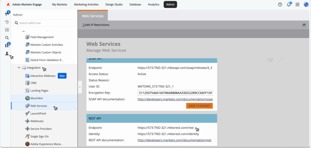 11. After you have made a note of your Program ID, you will need to obtain the Domain. The unique part of the domain is provided to you within your REST API endpoint. You can find this within the Web Services section of the Marketo dashboard.