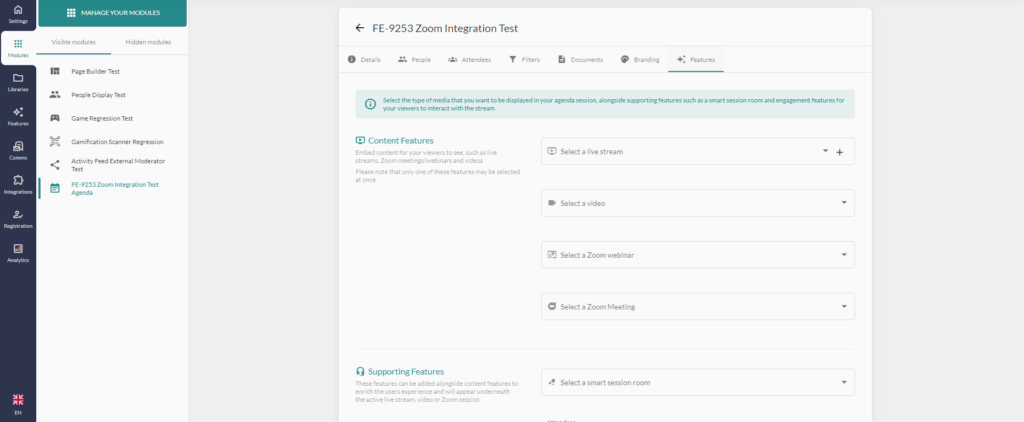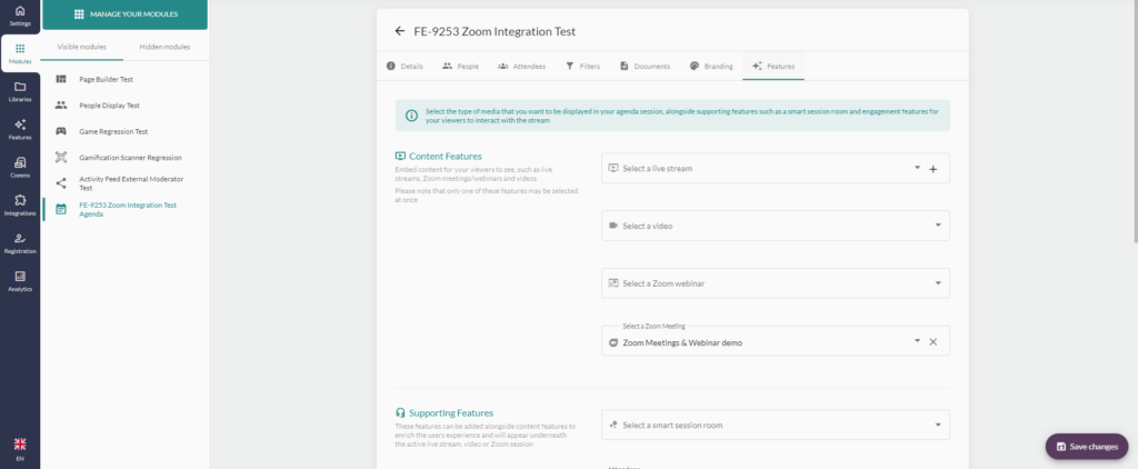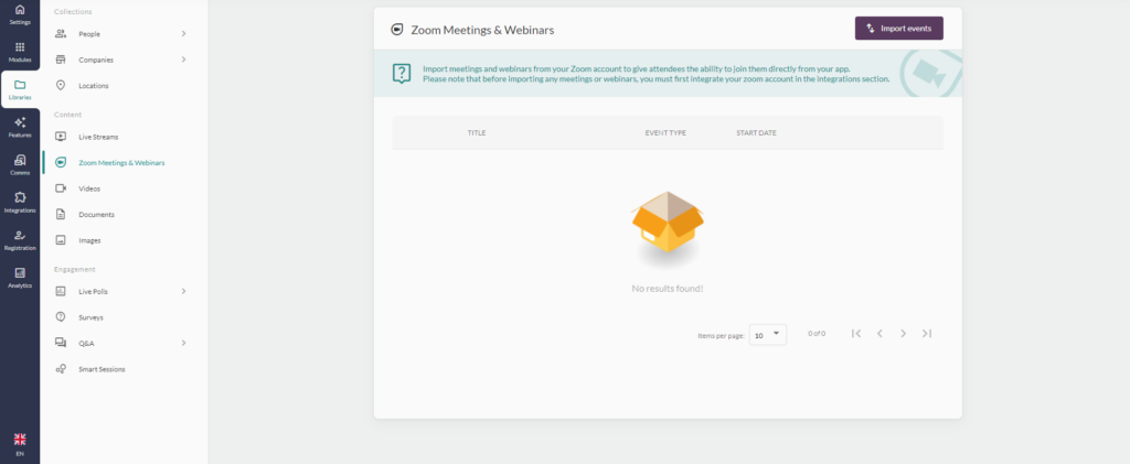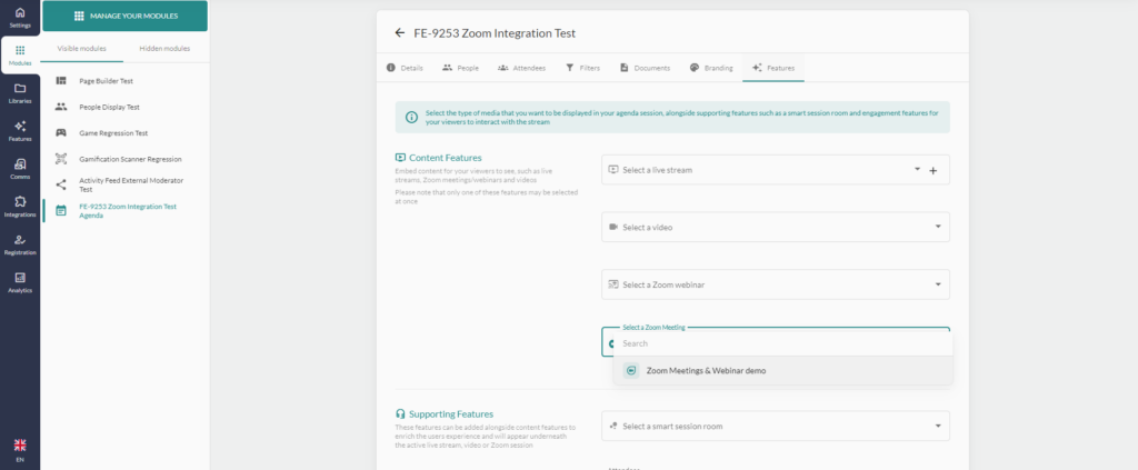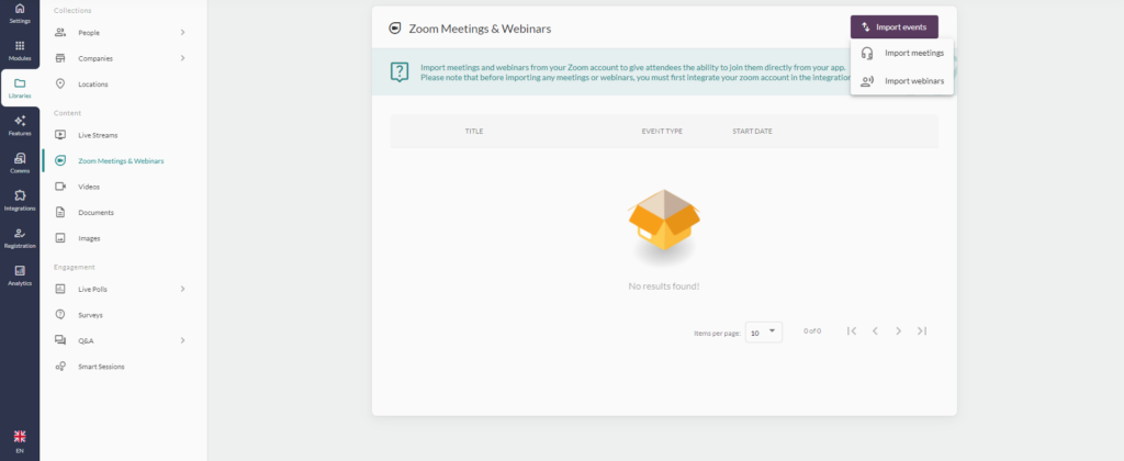 Important: Zoom integration requires the sessions and webinars to be recorded on Zoom. The recordings will not automatically be available in the CrowdComms video library, however the Zoom recording can be uploaded after the session to the CrowdComms video library for on demand viewing.
