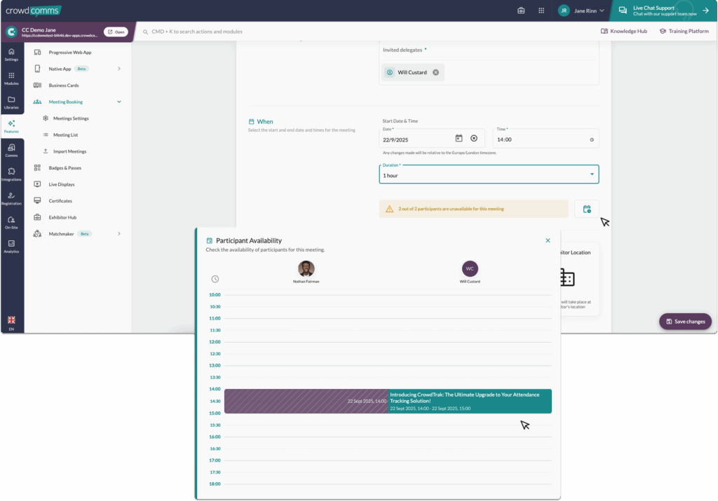 • Set the meeting type – Delegate to Delegate or Delegate to Exhibitor.