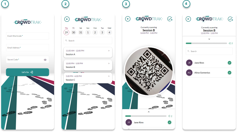 Elevate your event experience with our all-in-one solution. Track, monitor, report, and manage attendance effortlessly. Ensure instant and accurate records for tickets, safety, catering, CPD, sponsored sessions, or mandatory sessions. With CrowdTrak, use your device to scan or let attendees check themselves in.