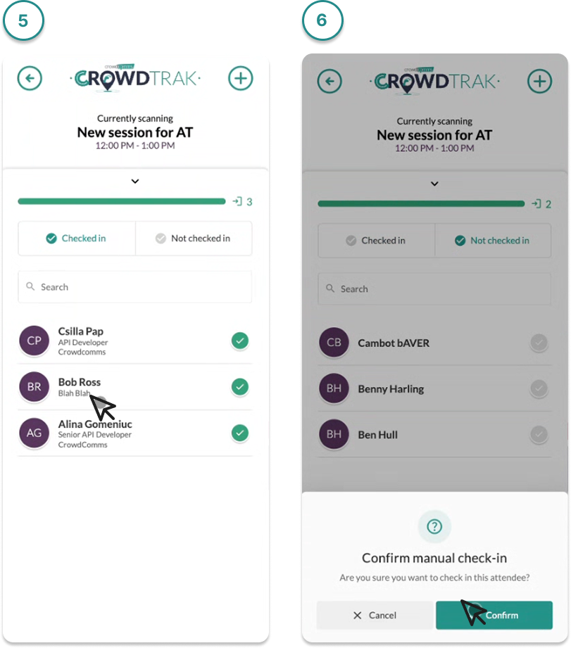 - All Attendees: Will display two separate lists you can easily toggle between to see who has checked in and a second list of who is yet to arrive.