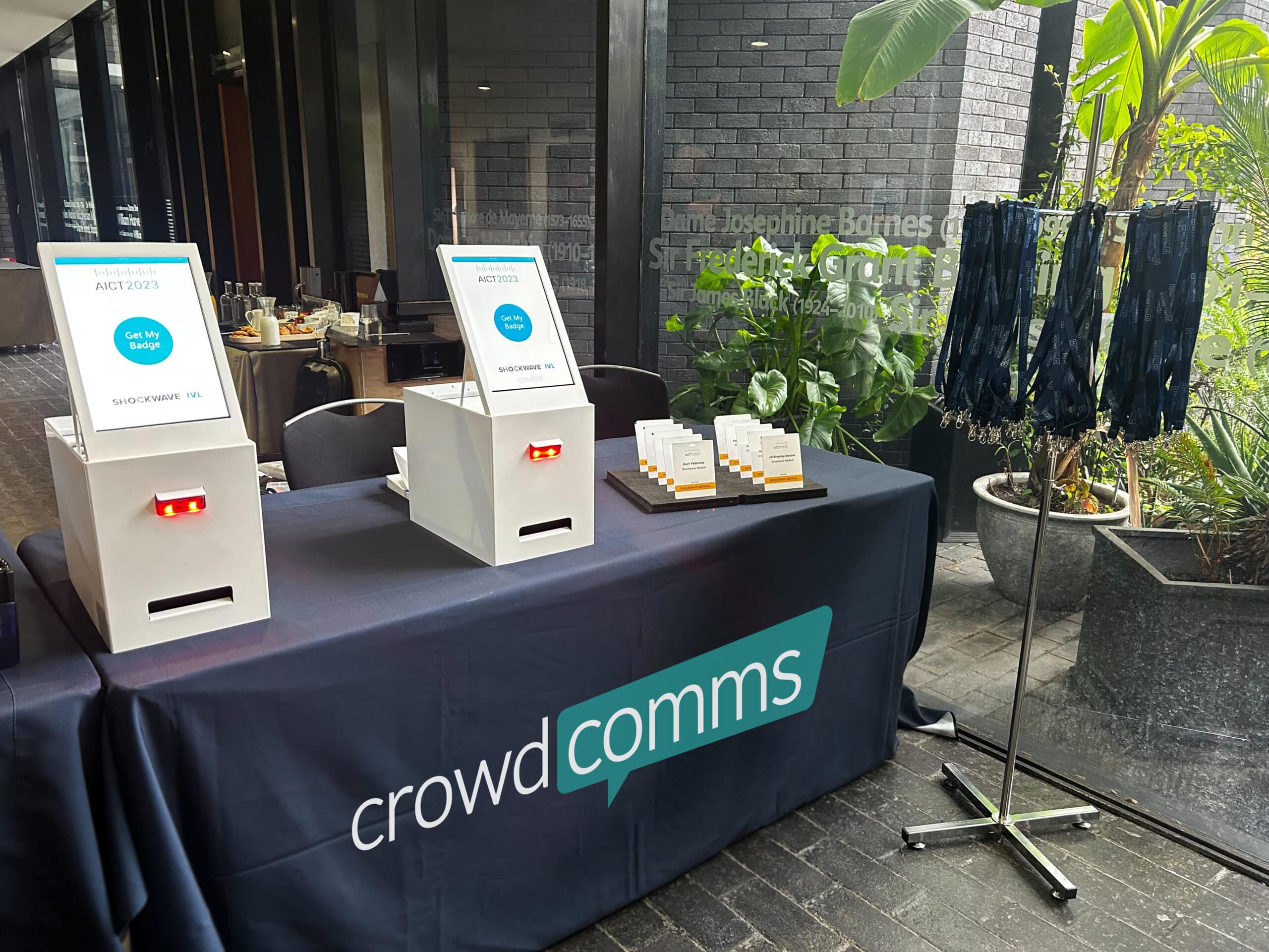 Cue CrowdComms; we were delighted to unveil our latest innovation: a smaller, eco-friendly registration kiosk. This compact kiosk represents a significant stride in our commitment towards sustainability and sustainable event technology. Event planners can now say goodbye to the additional carbon footprint and cost associated with flying bulky equipment! Our new kiosk’s travel-friendly design allows it to be easily tucked into your luggage, merging convenience with eco-consciousness.